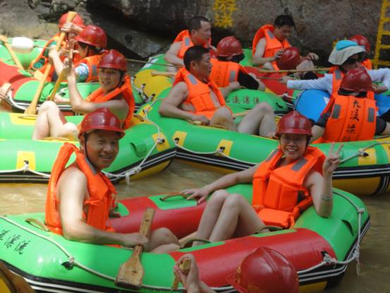 駕著無(wú)動(dòng)力的小舟,利用船槳掌握好方向,在時(shí)而湍急時(shí)而平緩的水流中順流而下,在與大自然抗?fàn)幹醒堇[精彩的瞬間,這就是漂流,一項(xiàng)勇敢者的運(yùn)動(dòng)。一條蜿蜒流動(dòng)的河,延伸在峽谷堅(jiān)硬的腹地。乘著橡皮艇順流而下,天高水長(zhǎng),陽(yáng)光普照,四面青山環(huán)繞,漂流其間,迎面而來(lái)的是一種期待--期待刺激!期待驚險(xiǎn)!期待與自然的搏斗!期待"有驚無(wú)險(xiǎn)"后的輕松!